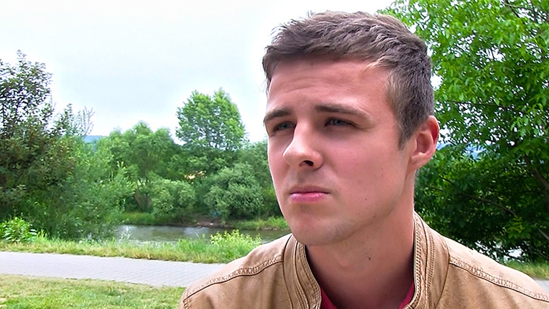 I was sitting already at one of my favorite restaurants next to the river. It was pure luck that I had the cam with me this day as I just came back from Jiri who had the cam before. My friend knows about my special hobby and he wasn´t even pissed when I told him that one of those two guys sitting close to us attracted my attention. And he was even curious to see me in "action." First I thought that I would maybe have to convince both to join me but then again I was happy that the other one left for home. And me all alone with his sexy friend ;-)