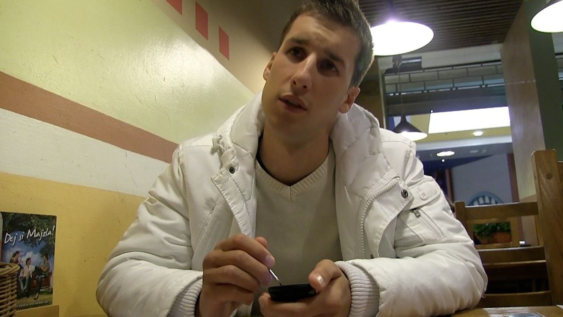 I love shopping-center. They are one of the best places to find some younger guys who regularly love to hang around. But today the center was quite empty. So I entered the supermarket and finally I found some nice boy. He wanted to cook something special for his girlfriend and was looking for good oil. Well, I told him that I make some market-research and involved him into a small interview. I also asked him about his opinion about the "Fast Money" shows. He was quite open and I invited him on a coffee where I offered him damn good money to show me his body. Well, what can I say? We ended in the cabin of the center-toilet. And he had much more to offer than just his chest.