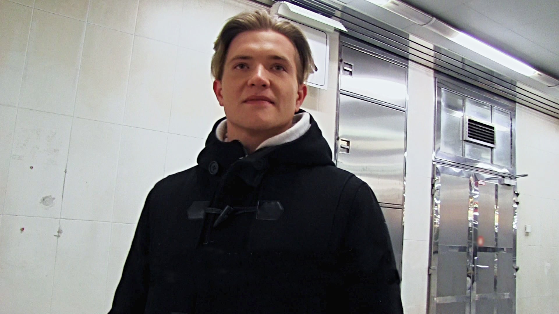 As it is getting colder and colder, I started the hunt in the metro station today. It didn’t take too long until a young looking, blond guy caught my attention. He didn’t seem to be happy when I ap-proached him… maybe because of my camera, but when I offered him 2000 crowns he agreed to give me a short “interview”. From that moment onwards, he became sort of an “open book”: he was coming from Ostrava; he didn’t like his job there, and wanted to check out Prague. Maybe he was even thinking of searching for a job here, but he quickly added that everything here was more ex-pensive than in his home city. No doubt about that. Luckily, I had a nice offer for him. Would he be willing to show me his body? Moreover, if so, how far would he go?
