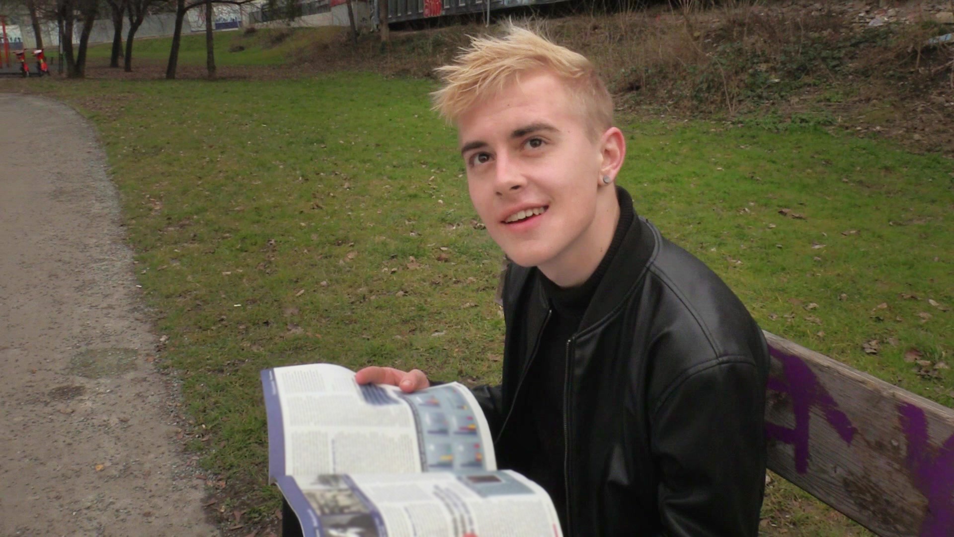 I went hunting to a nearby outdoor gym but to my surprise the place was totally empty. Even the surrounding park was almost deserted. The only person around was a young nerdy looking man sitting on a bench and reading a magazine. He was cute so I started chatting with him. Jara was a student preparing for an exam. Apparently, he was a big military history nerd and a wannabe traveler. His dream was to visit Egypt, but he couldn't afford the trip. I offered him some cash for his travels in exchange for a look at his body and maybe more... He agreed right away! The guy was quite curious and more than willing to experiment. I think he was keen on trying anything gay even before and doing it for money made it somehow easier. He definitely enjoyed it and agreed to meet again soon. Not for free, of course.
