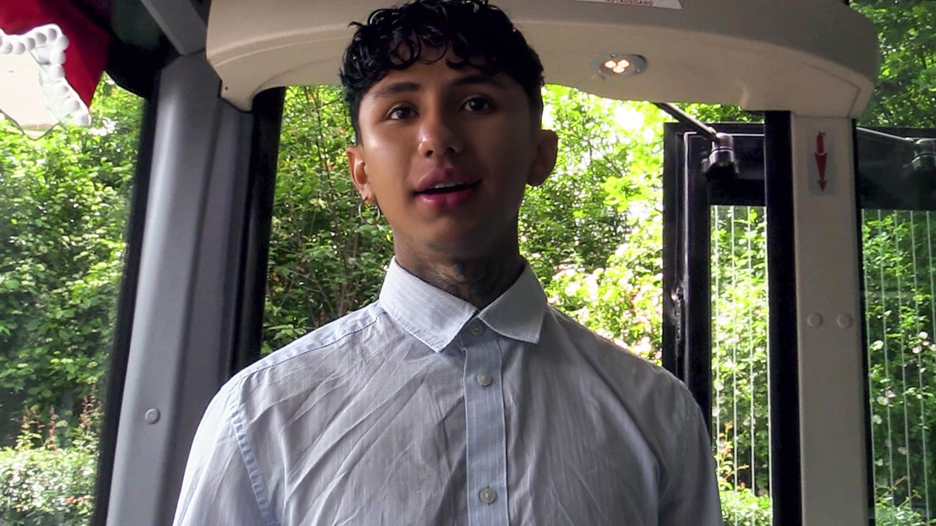 This cutie was something special. I was having a break during my bus driver job when a handsome foreigner knocked on my door. He needed someone to get him to the city airport. I didn't mind, the bus was empty and I had time. Unfortunately, the poor dude didn't have enough cash on him and his credit card didn't work. We had to figure out another way to pay. The solution was obvious, and the guy just loved my naughty proposition. I parked the bus nearby so we wouldn't be disturbed. Then all hell broke loose. That dude was super horny and just loved my hard cock. He sucked it like there was no tomorrow and shoved it right in his hairless ass. I couldn't believe how much pounding he was able to take. I emptied my balls right on his beautiful face and then gave him the ride to the airport.