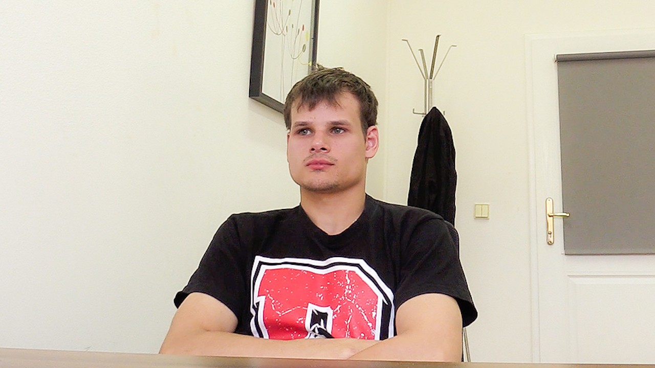 This boy was a little slow and gave me really hard time. He was a butcher who didn´t want to be a butcher anymore. His dreamed of going to Australia and catch snakes or something like that. It wasn´t easy to have a meaningful conversation with him. Fortunately, he had some experience as a cook, which made a pretty good combination with his butchering skills. I offered him a nice help cook position at a hotel in Prague. He wasn´t very enthusiastic about it. When I told him about our fee, I started to worry he might leave my office. I could see he had a muscular body so I tried all my magic on him. It was worth it because when he tossed away his stupid clothes, he looked amazingly. I could see his cock getting hard from the excitement.