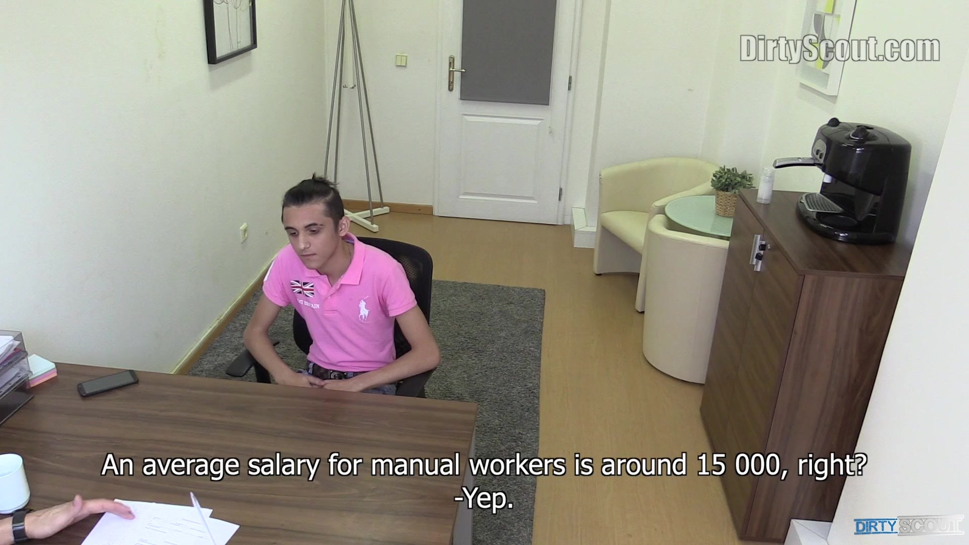 This guy read about our company on the internet and decided to use our services. I think he was pretty shy and scared, not surprising for such a young man. I had to do most of the talking but his qualification was good enough and I also liked his cool looking clothes. He definitely knew how to dress. That was why I gave him a job at a clothing retailer. He looked happy about the new work until I told him about the fee that had to be paid. The guy was broke and definitely didn’t like my naughty offers that followed. Eventually, I managed to talk him into becoming my sexual toy but I had to be very careful. The office was full of people today and my secretary was sitting just next door. I had to pretend that I’m still working and fuck this cutie really quietly.