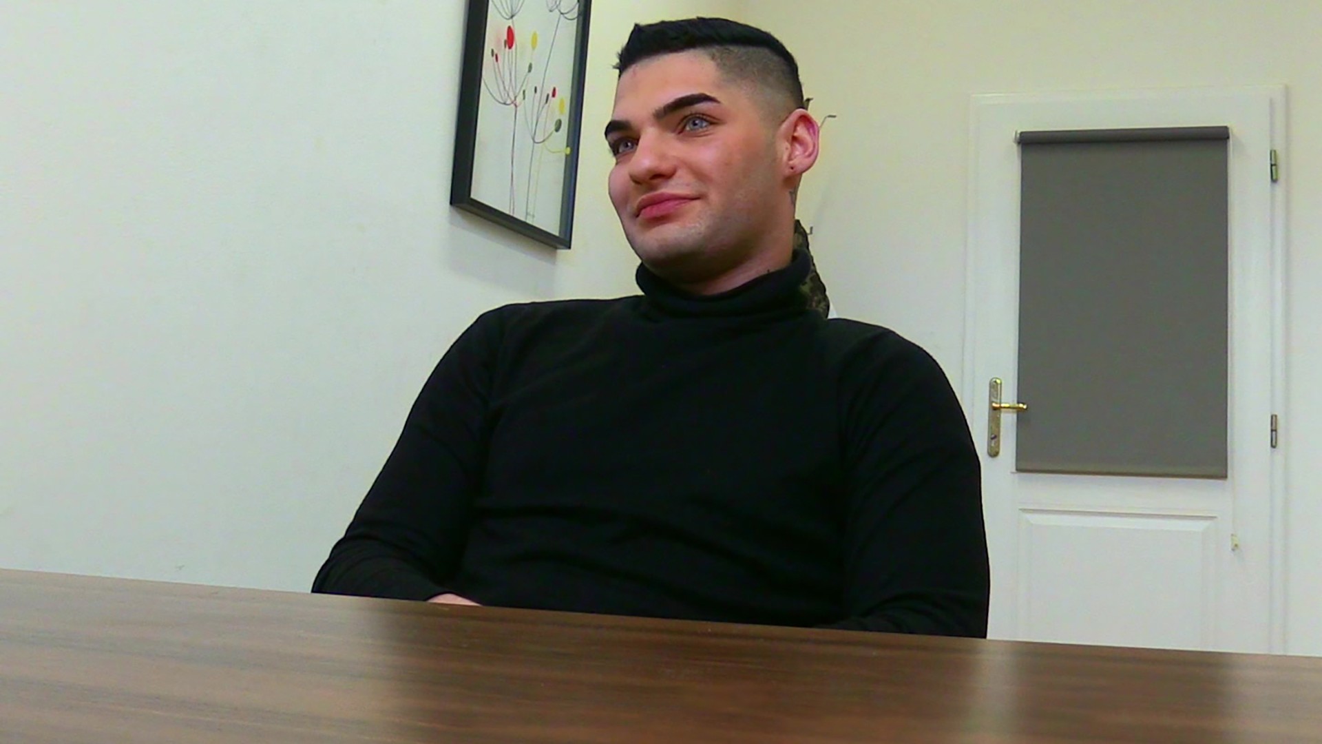 I think this cute young man really enjoyed the interview. He was a student only months away from graduation. Being a pretty confident guy, he was already looking for a job in the capital. I like bold and handsome dudes so I offered him a job at a barber shop. He loved it. Thank god he couldn't afford to pay the mediation fee. I would be so disappointed otherwise. My naughty proposition stunned him for a moment, he thought it was inappropriate but quickly changed his mind. I just loved his muscular body covered in tattoos. It was a nice contrast to his gentle and innocent face. Well, this dude was everything but innocent. He had to be really horny because his cock was up even faster than mine. He took great care of my cock and then let me inside of his clean shaved and nicely tight ass.