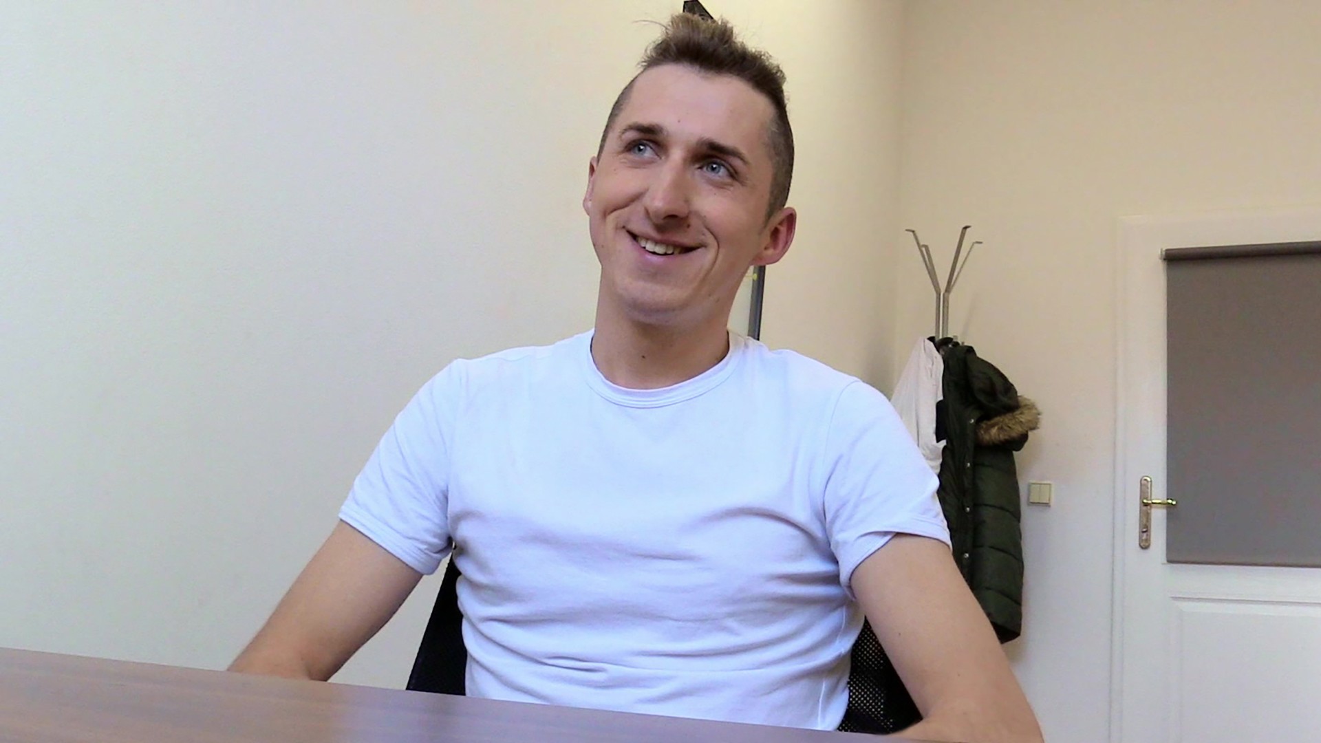 This young man was originally from abroad, he moved to the Czech Republic a few years back. His strong accent made things a bit difficult but we managed. The guy had a few bad experiences with Czech companies using him as cheap labour. The poor dude just wanted a normal and respectable job. He was really sweet, especially his lovely blond ponytail, so I decided to help him. He was looking for a job at a restaurant and I offered him the best one he could get. Our mediation fee was a big problem therefore I had a nice excuse to have a peek at his naked body. The guy agreed and that was just the beginning. He had some gay experience and needed money. I could hardly ask for a better combination. I don't want to spoil things but he cummed while having my horny cock right in his ass. Beautiful.