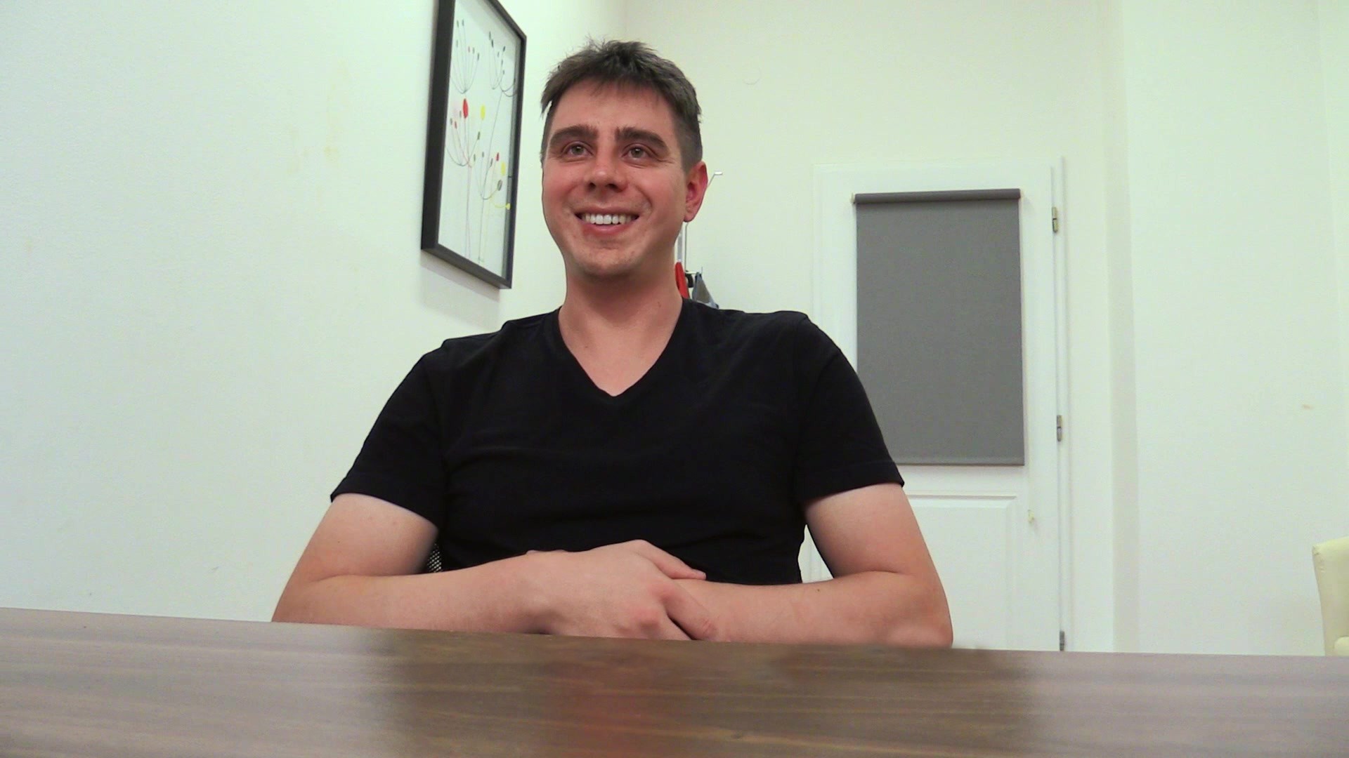 Dominik seemed to be a very competent young man with plenty of experience. He worked as a crisis manager and his skills were valued very high. Unfortunately, the job was quite stressful and our guy had enough of that. He wanted to manage regular situations and finally be able to enjoy free time without being interrupted. That was why I offered him a pleasant job in Vienna. Did I mention that Dominik spoke four languages? He was also really cute. This guy was a perfect employee and that was the problem. How do you bribe someone who is seemingly perfect into having sex during a job interview? It was surprisingly easy in the end because Dominik lost his wallet and couldn't withdraw money to pay our fee... Bingo! Soon he was masturbating right in front of me. And that was just the beginning.
