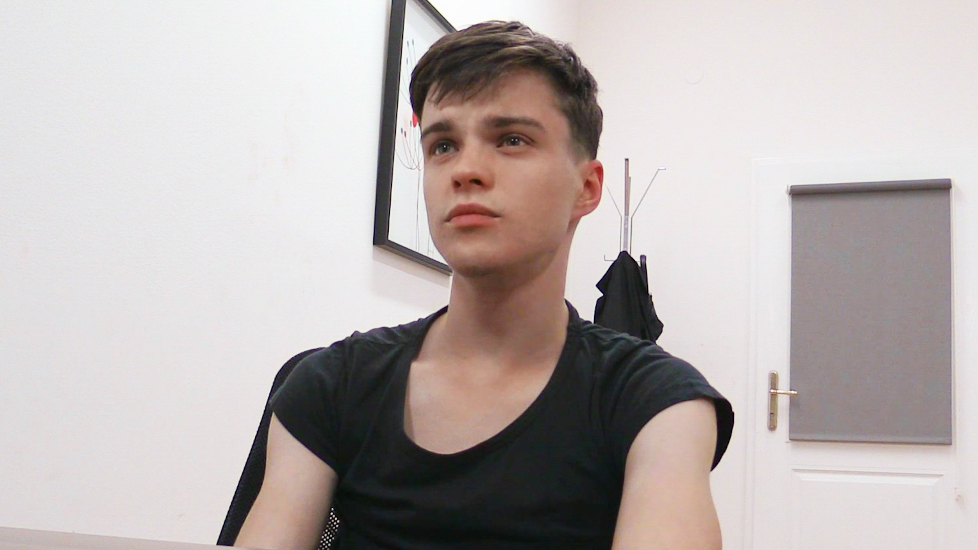 It's hard to get a job of your dreams when you're young. You lack experience and have to settle with something less interesting. This young man wanted to work in IT but couldn't find anything. He spent almost two years in various pubs and clubs as a bartender instead. When I saw his cute and innocent face, I was ready to hire him on the spot. There was a junior position open and the guy qualified for it nicely. He was unemployed and in debt, so our mediation fee was a big problem. On the other hand, undressing for money wasn't exactly a problem for this dude. He wasn't shy at all. Unfortunately, my cock was way too big for his delicate virgin ass. It took a great deal of stretching before he was able to enjoy our time together. His lovely cock exploded beautifully so I hope he had some fun, too.
