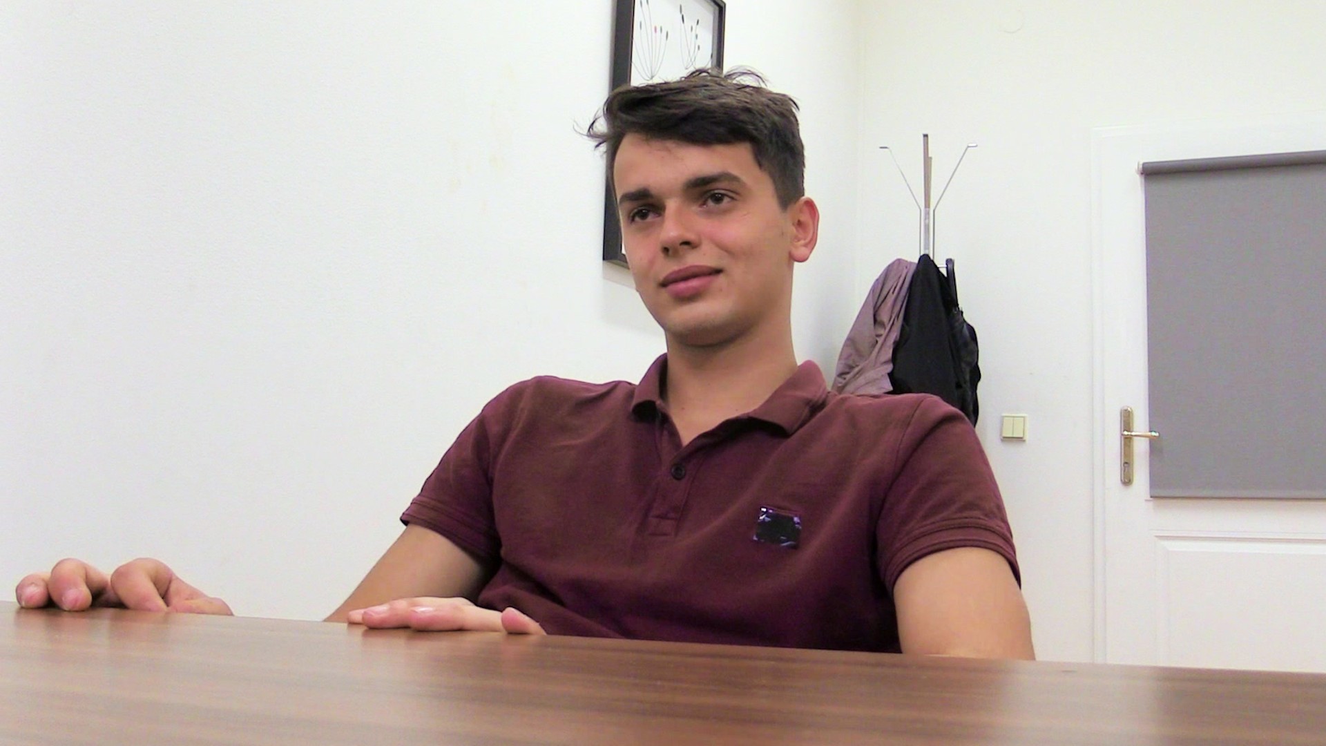 This young man was interesting. He studied agriculture and then worked at a farm for some time. He liked the job, the only problem there was his boss. You know, the dude was quite handsome, and I am gay. Finding him a good new job was the only solution in the end. That was why he got in my office. I found him a new and better job but there was a catch. He couldn't afford to pay our mediation fee and was too proud to borrow money. I was really getting horny because this was a real cutie sitting right in front of me. To my surprise, he agreed to undress and work the fee off. Maybe I was good looking and didn't stink of manure, unlike his former boss. I also had plenty of money in my pockets, which probably did the trick.