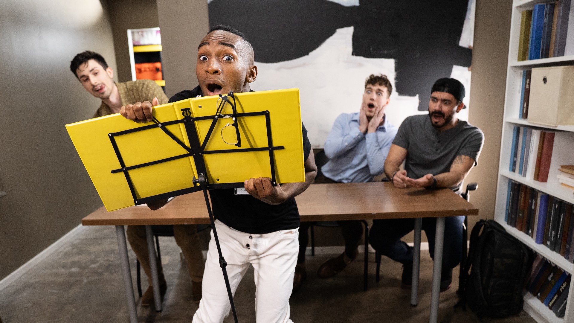 Kai is nervous about his presentation to a group of former sports champs, so he decides to give himself a little mood boost with a remote-controlled vibrating butt plug. But the toy is too powerful, and just as his audience enters the room, the nervous speaker drops the remote... and Kane Fox steps on it! Kane notices Kai reacts strongly every time he hits the button, and he plays with the toy with a smirk as Kai tries to continue his speech, until the horny bottom's huge erection pops off his pants in front of everyone! The rest of the audience leaves, while Kane returns the remote to its owner, then bends Kai over to take out the plug and rim his hole. Kai's ready for Kane's cock and takes it doggystyle before riding him on a bench. Kane hoists the bottom for a stand-and-carry, then drills him on the conference table till Kai shoots his load. Taking a facial is the perfect way to finish this presentation!