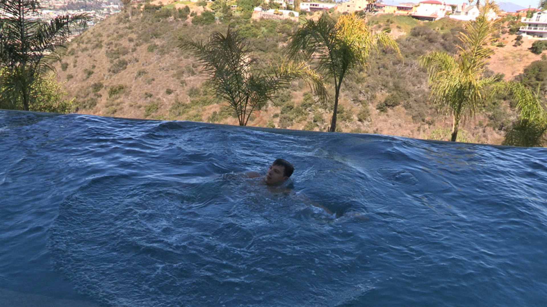 Bob spends a lot of time at work, so when the chance to do something fun pops up he takes it. He had huge smile on his face as he quickly shed his clothes in order to jump into the pool!anI think this is the first time I have ever gone skinny dipping in the daytime!He jumped in and started flipping around. He was like a little dude discovering something for the first time.Bob is a former Marine with a fantastic body, great ass, and uncut cock.anI was in the military for some time, he told us. anThen I figured it was time to get out, raise a family and all that good stuff.anI'm guessing from the tattoos that you're Irish? I asked.anIrish and proud! he said. anI got them when I was younger and in the service.The best thing about Bob was his smile... it's contagious!